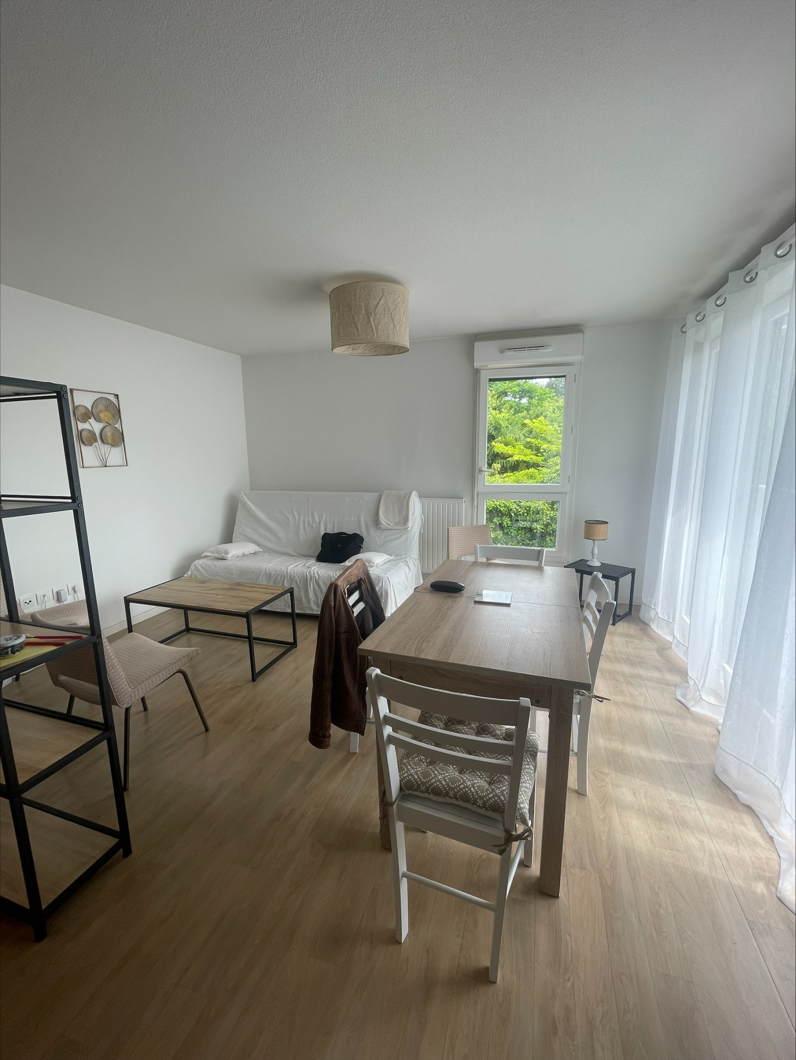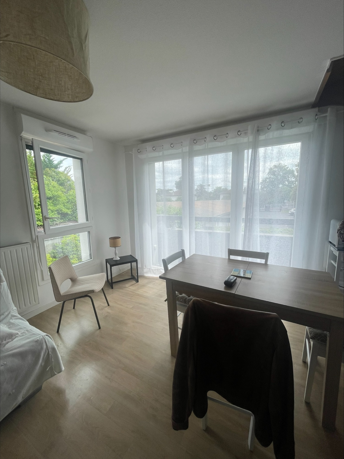 Appartement T3 duplex joliment meublé à proximité du tram B arrêt Peixotto situé dans une petite rue calme. Il est composé d'un séjour lumineux donnant sur un balconnet, la cuisine est entièrement équipée (plaques 4 feux, hotte, frigo, lave-linge, micro-onde, petit four, bouilloire).
